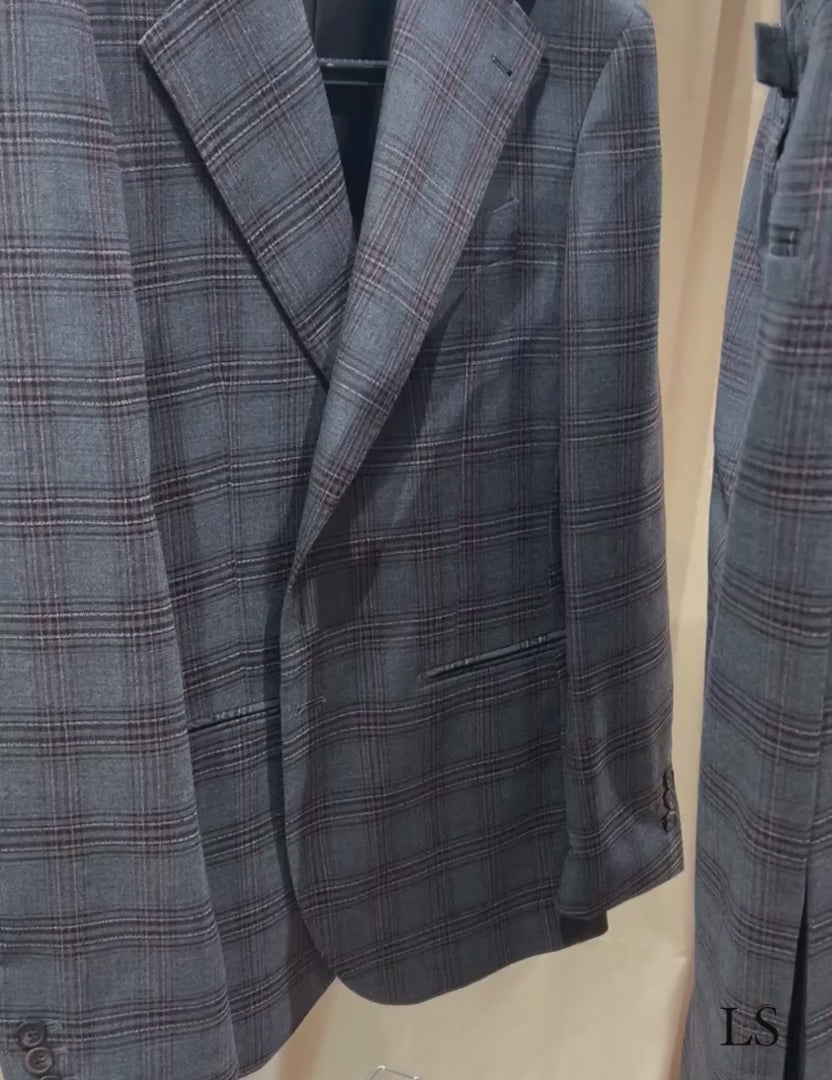 Traje de raya diplomática de dos botones con solapa con muesca en gris
